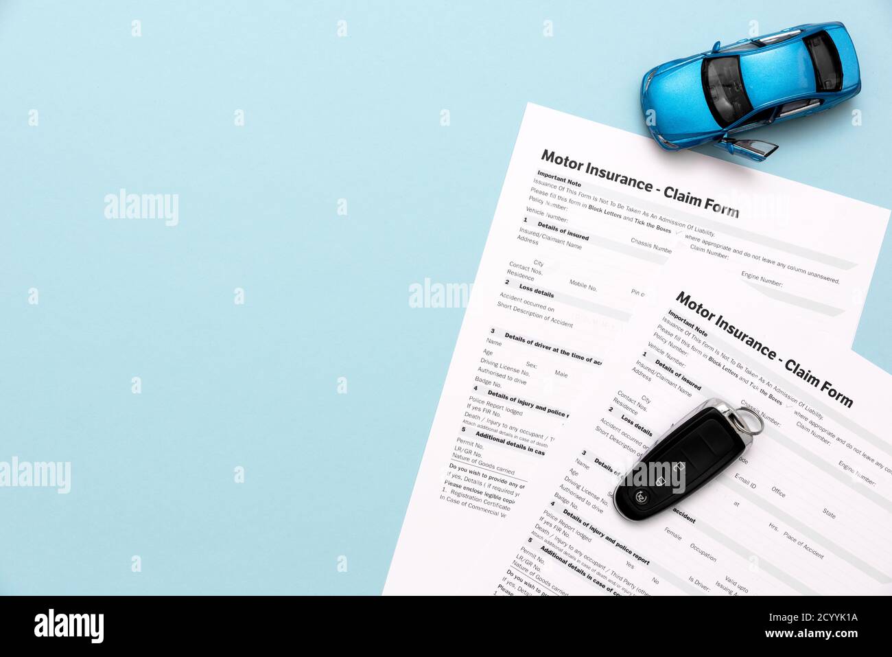 Car Insurance Insurance Contract And Car Keys On A Blue Background Stock Photo Alamy